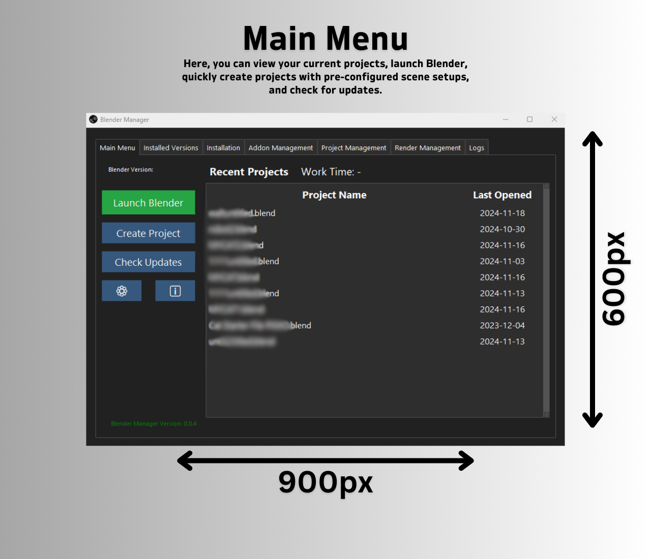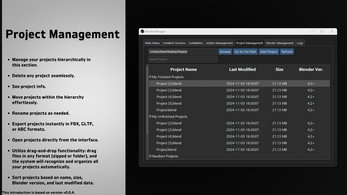 Blender Manager includes several powerful features designed to streamline project setup and tracking, all without the need to open Blender initially. Here’s a closer look at some of its standout functionalities:
