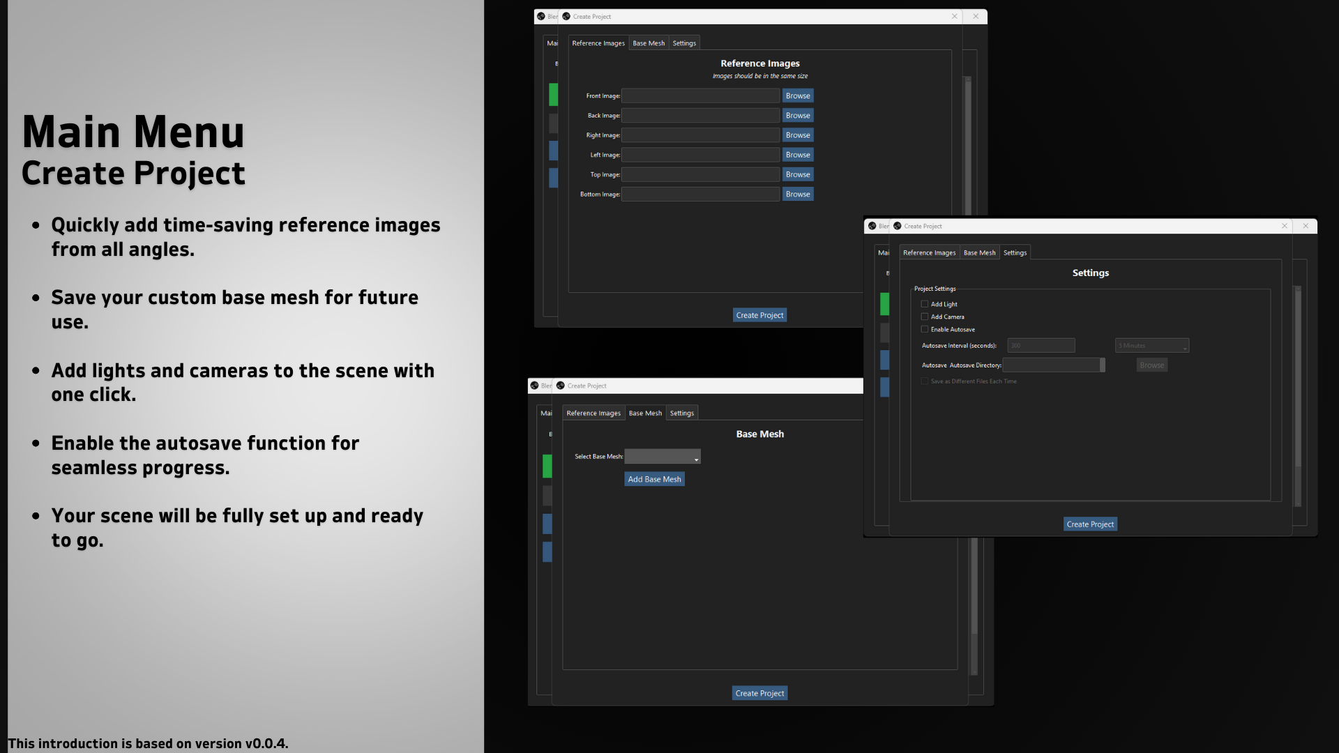 - Scene Configuration: Predefine scene elements such as adding a camera and lights, and configure autosave options for immediate work upon opening the project in Blender.